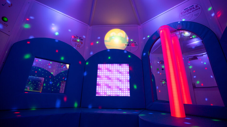 Inside the interactive sensory room with light panels.
